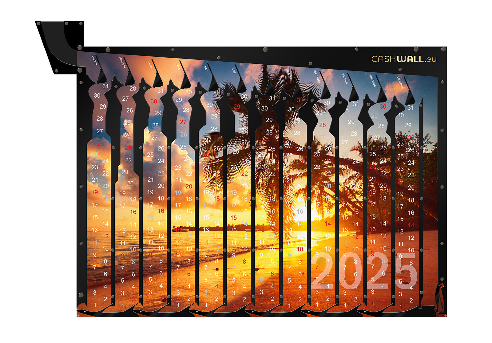 The 2025 Holidays calendar with a beautiful view is a great gift idea that can motivate you to save up for your dream trip. The calendar design with numbers fits everywhere and is suitable as a gift for everyone. It is possible to purchase the calendar poster itself for future years on our website, and replacing the background is very easy - just a few screws on the back need to be loosened.