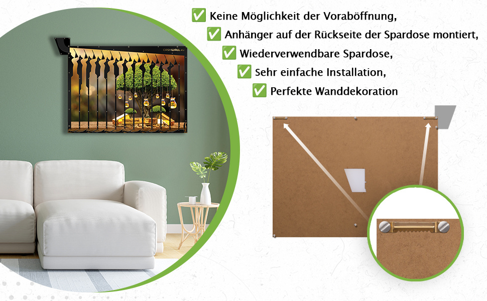 ➡️ Los soportes especiales facilitan la colocación de la hucha en la pared.