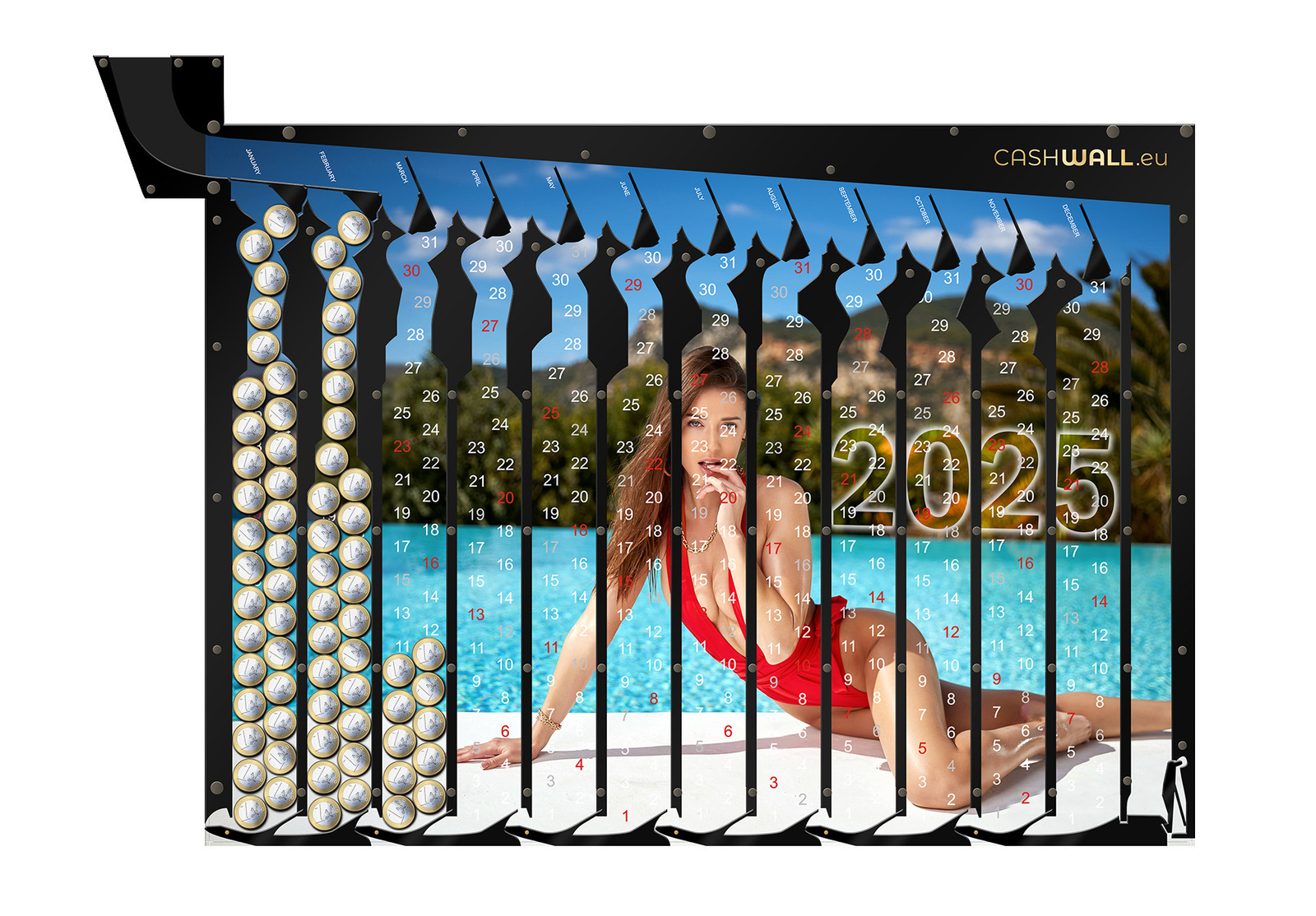 ➡️ La tirelire en forme de calendrier Calendrier 2025 Femme avec chiffres nous rappellera quand nous avons mis la dernière pièce,