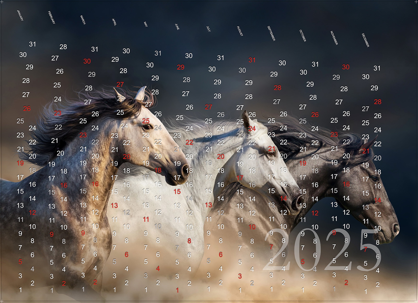 Fond tirelire murale | Calendrier 2025 Chevaux