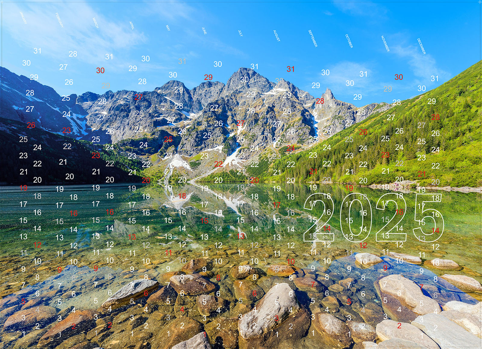 Fond Tirelire murale | Calendrier 2025 Vue sur la montagne